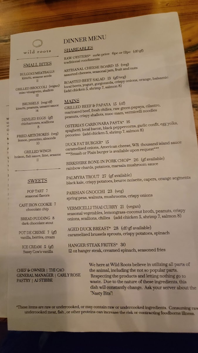 The dessert selection, featuring Creme Brulee and seasonal Pop Tart flavors, ensures a sweet ending to your meal. Patrons rave about the ambience, service, and unforgettable flavors that transport their palates, making Wild Roots a must-visit destination.